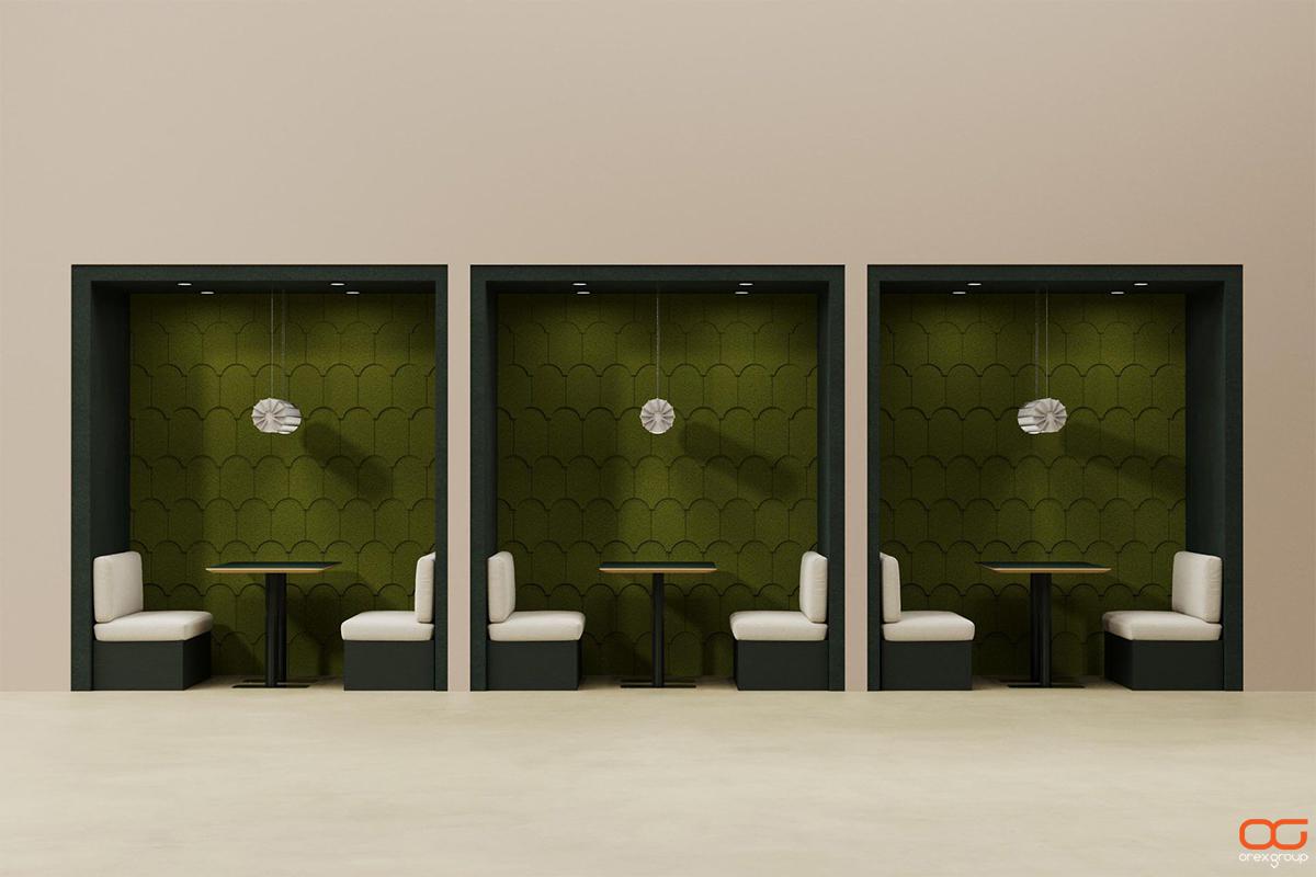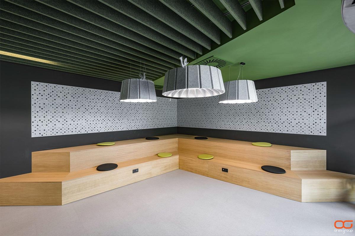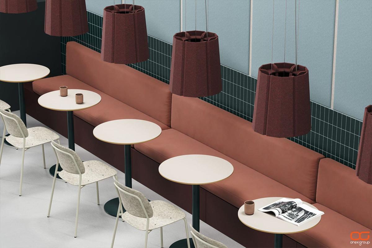 - Stilingas dizainas: Akustinis PET veltinis gaminamas įvairių spalvų, formų ir dizainų, todėl gali tapti stilingu interjero elementu ir puikiai derėti prie bet kokio stiliaus.