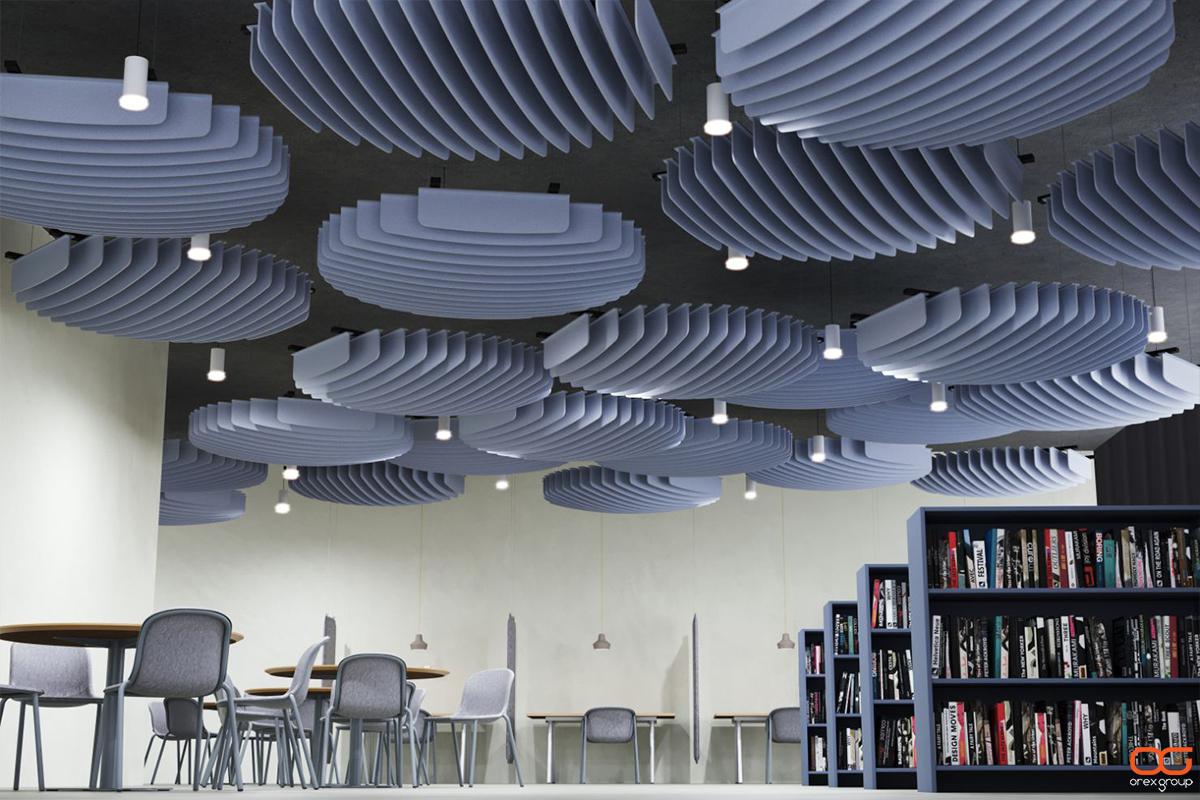 Lubinės akustinės PET veltinio plokštės gali pagerinti garso aiškumą ir sukurti jaukesnę atmosferą patalpoje. Jos gali sumažinti aidą, ypač erdvėse su aukštomis lubomis ar kietais paviršiais. Be to, lubinės plokštės gali suteikti interjerui modernumo ir išskirtinumo.